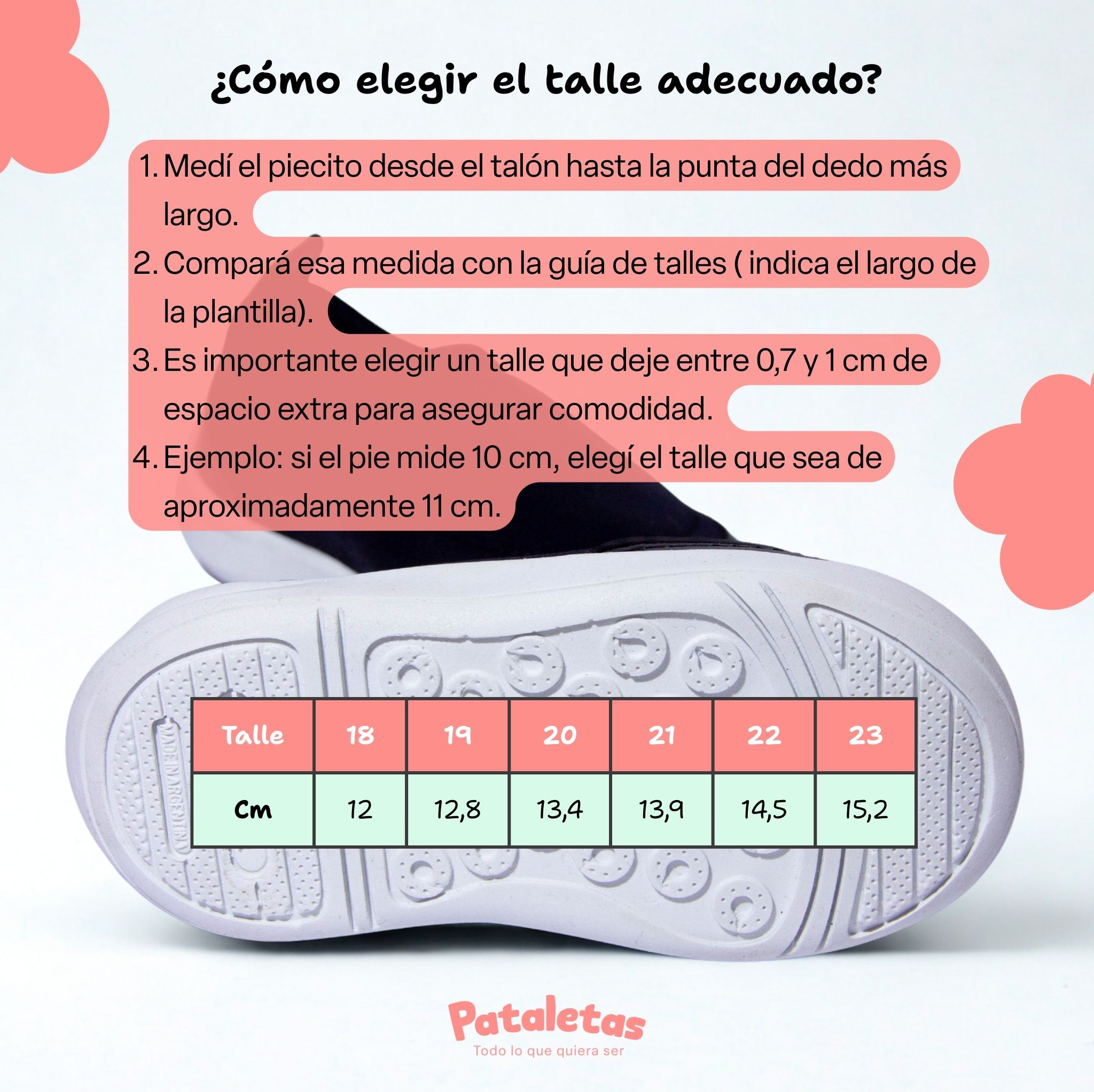 Las medidas se toman desde el talón hasta la punta del dedo más largo del pie de tu bebé. Se recomienda que sobre entre 0,8 y 1 cm desde el dedo a la punta del calzado.